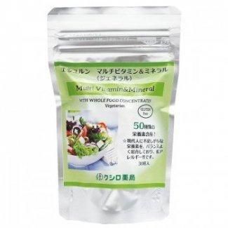 ビタミンA、ビタミンC、ビタミンD3、ビタミンE、ビタミンK2、チアミン、リボフラビン、ナイアシン、ビタミンB6、葉酸、ビタミンB12、ビオチン、パントテン酸、コリン、カルシウム、鉄、ヨウ素、マグネシウム、亜鉛、セレン、銅、マンガン、クロム、モリブデン、カリウム、スピルリナ、プロバイオティクスファイバーブレンド、複合バイオフラボノイド、人参根(韓国産)、イノシトール、ケルセチン、ルテイン、ベタイン塩酸、リンゴペクチン、PABA、クロロフィル、複合ヘスペリジン、カロテノイド、オクタコサノール