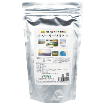 オーストラリアのシャークベイ塩田、メキシコのゲレロネグロ塩田で海水を2〜3年かけて風と太陽の光で自然に濃縮させ、結晶化した塩を再び塩水で洗い流し、マグネシウムを取り除いた天日塩を原料としています。その天日塩を輸入後に砂や小石を丁寧に取り除き粉砕した商品がソーラーソルトです。